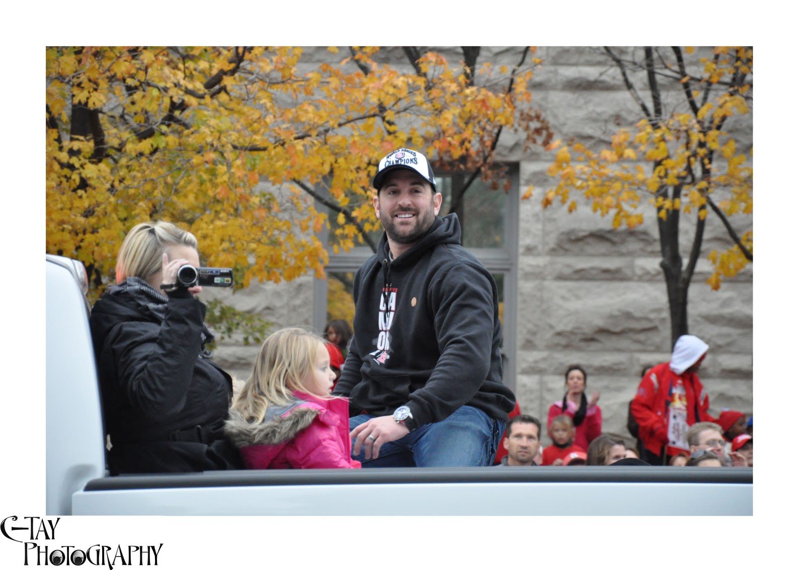 The day my mom went into the hospital my dad asked Josh and I if we wanted to help out at the WS Parade if the Card's could pull it through and win the series. Josh of course jumped at it, I had only one question - Can I take my camera? The answer was yes! That day was probably one of the best days of my Photographic life. I had a lot of fun celebrating - even though, yes I know I'm a STL heathen for saying this, I'm not a HUGE Card fan (I do enjoy going to games and cheering for them, but I don't put off plans to watch a game ... if you catch my drift :P). Unfortunately, not all of the players turned around or had a good seat for me to catch their face, but the players I did you could tell were still amazed that they had won it. It was such a cool feeling because not one of those players had on the face of "it's all about me" or "of course we won it", they were all very humble - none more than our MVP David Freese. Anyways, enough of my senseless chatter, onto the pictures!